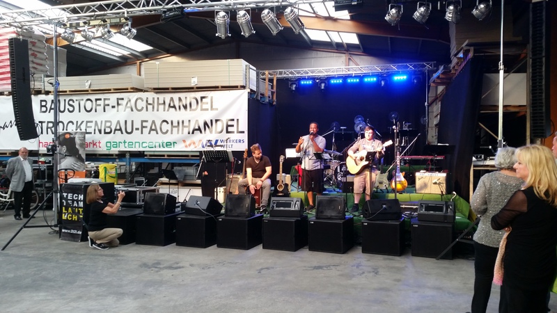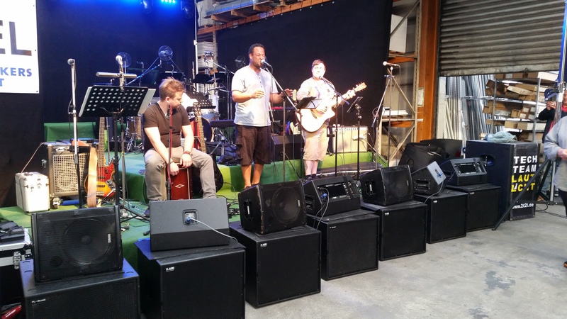 Monitoring mit 4x PL-Audio Monitor (passiv + Endstufe) + 4x Dynacord (zwei aktiv, zwei passiv)